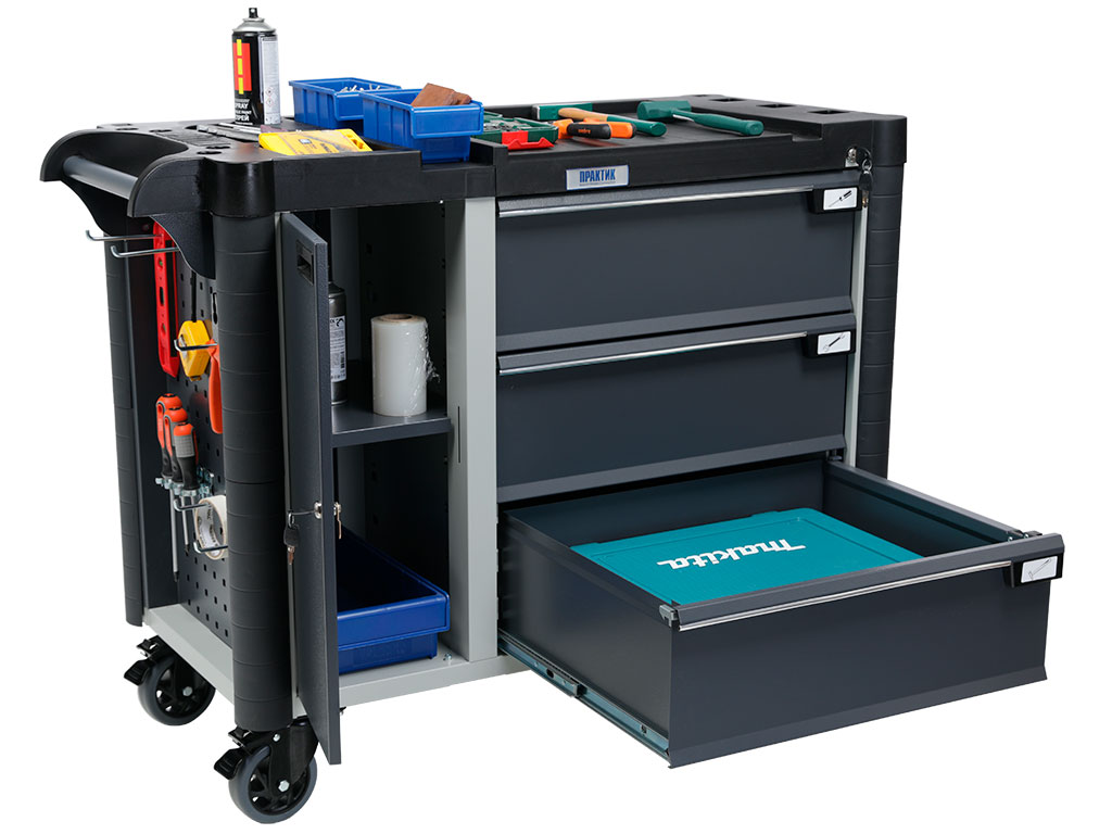 Designed for secure storage and transportation of tools and spare parts at manufacturing enterprises, car service stations and different workshops and factirues. Can be used in Lean manufacturing system of enterprises and mobile workplaces.
