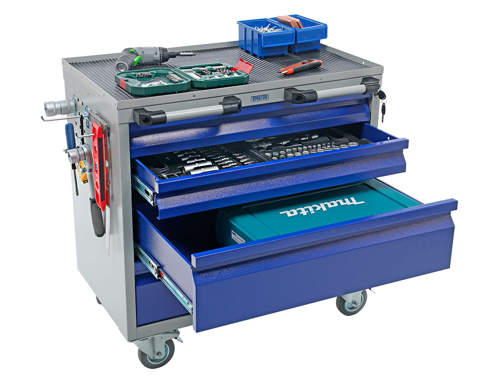Tool trolley is used for storage and operational movement of tools and equipment at the manufacturing enterprises, in car services and repair shops. Trolleys are produced both open and closed type.