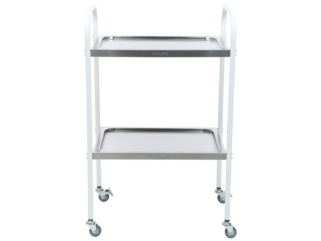 Treatment tables for hospitals, clinics, laboratories, sanatoriums and other medical facilities are represented by a series of manipulation and treatment tables Hilfe. Depending on the design, they can be used for the placement of instruments, injection and infusion solutions, or for the storage of tablet medicines, ointments and dressings. Given the necessary mobility, all models of the series are made mobile. Thanks to the self-orienting wheels D= 50 mm, they can easily move on any type of floor coverings of medical institutions.