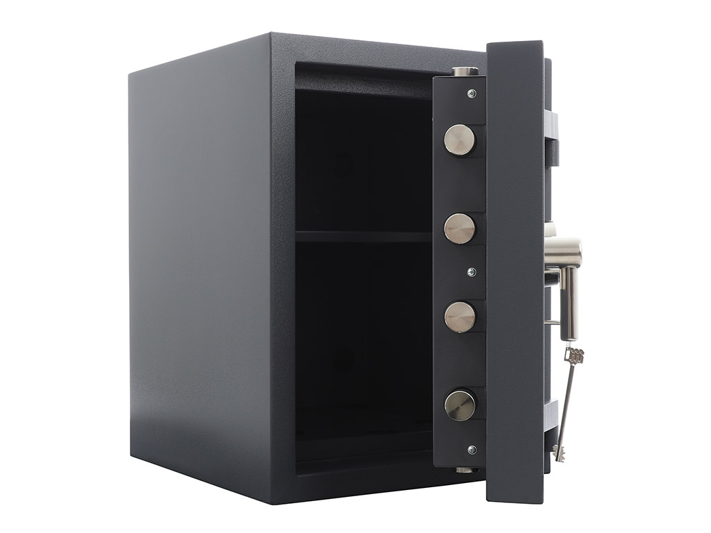 - The safe body and the door are manufactured with two inter-welded walls that are filled with strong heavy concrete.