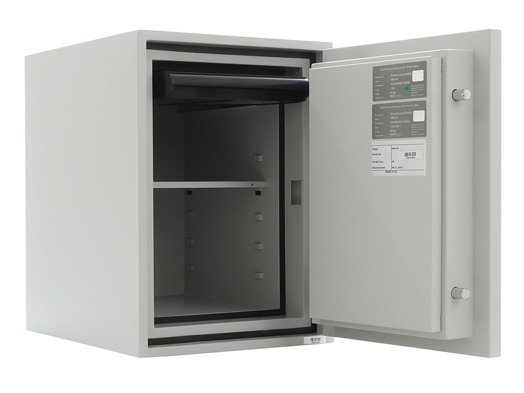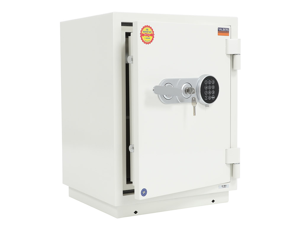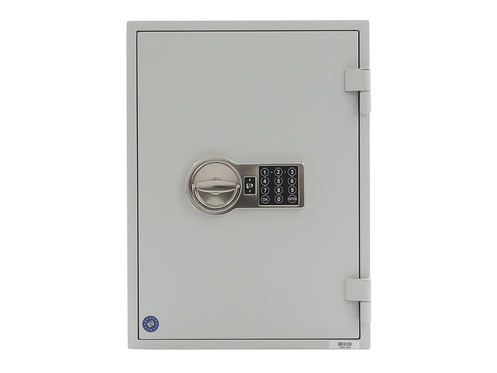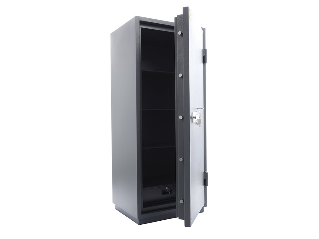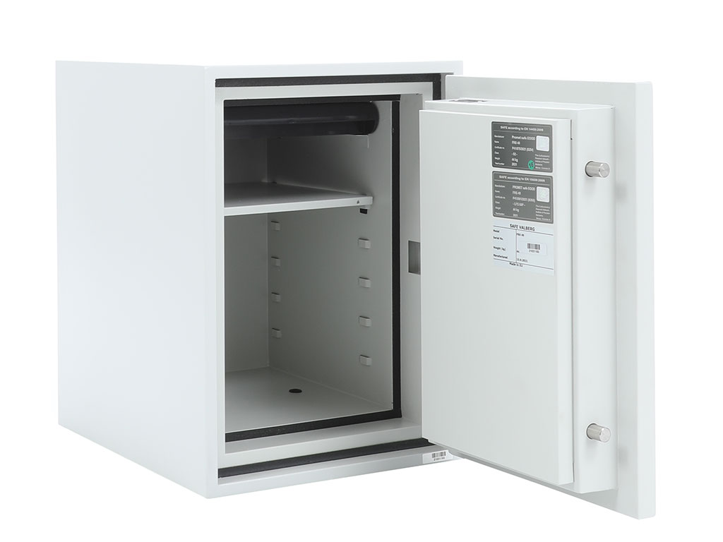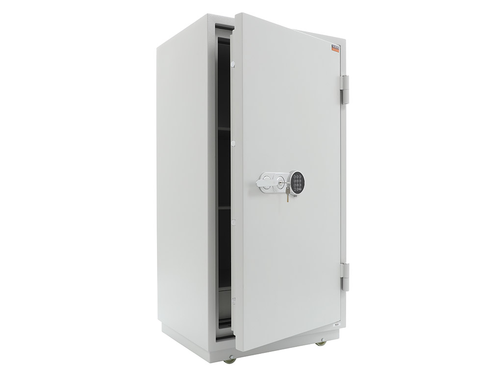 - The safe body and door are manufactured with two inter-welded walls that are filled with fire resistant concrete. Pull out tray or drawer included.