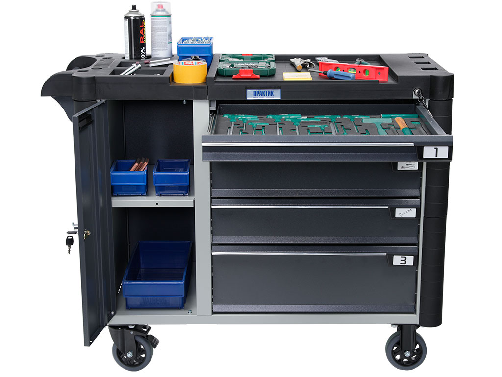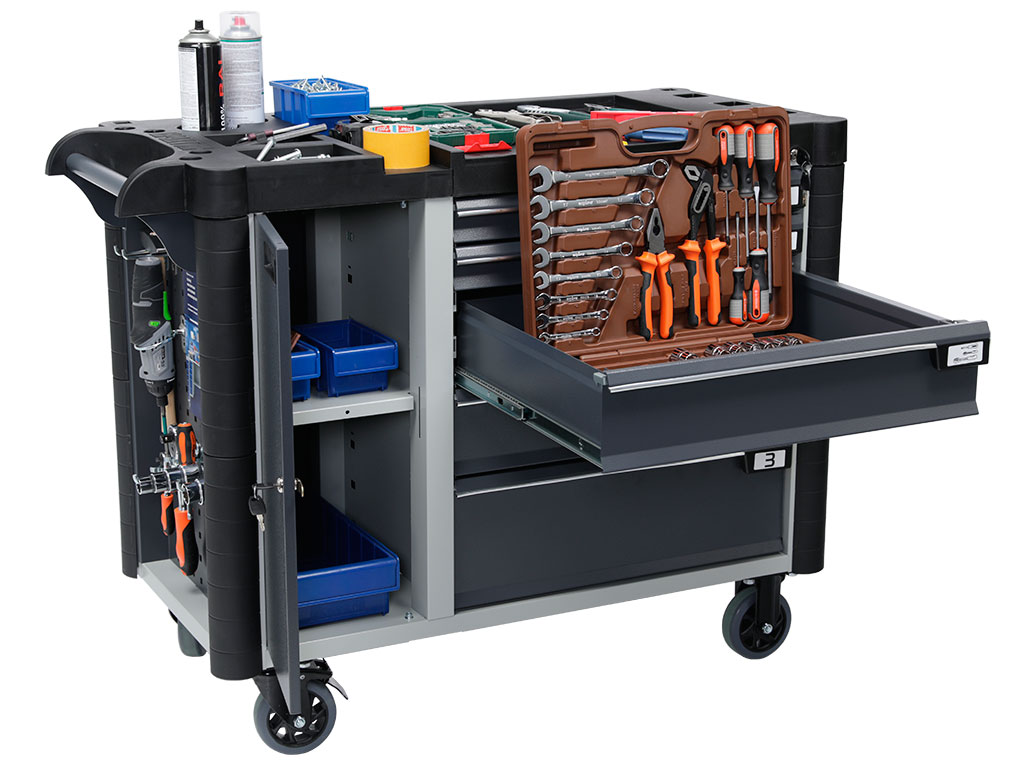 Designed for secure storage and transportation of tools and spare parts at manufacturing enterprises, car service stations and different workshops and factirues. Can be used in Lean manufacturing system of enterprises and mobile workplaces.
