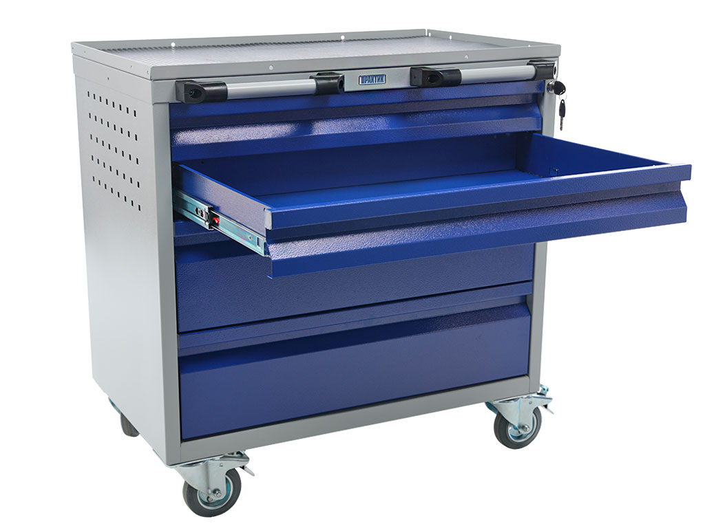 Tool trolley is used for storage and operational movement of tools and equipment at the manufacturing enterprises, in car services and repair shops. Trolleys are produced both open and closed type.