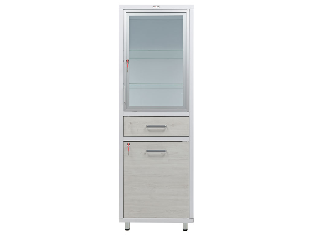 - In the upper compartment doors – glass metal framed 60mm and two adjustable glass shelves