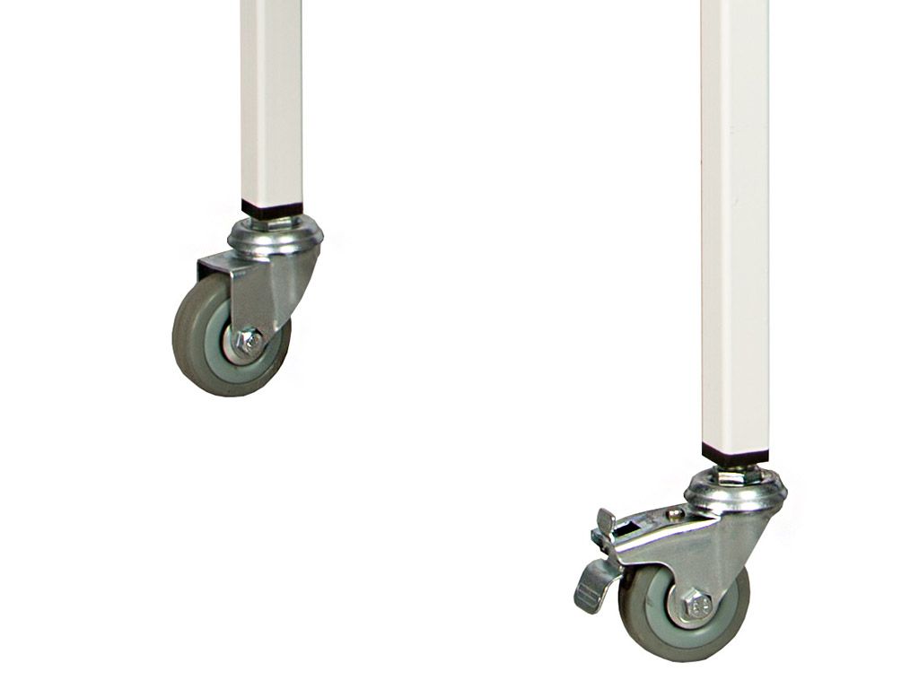 - installed on 4 self-orientating wheels of non-marking gray rubber, with a diameter of 50 mm, 2 wheels with a stopper