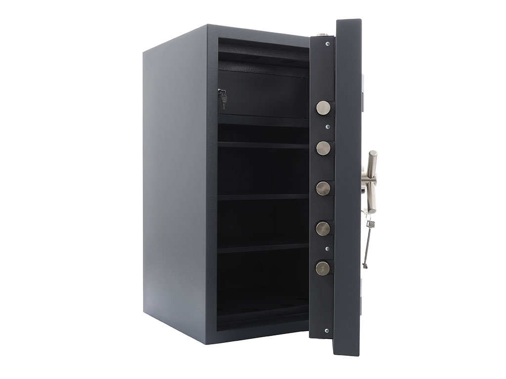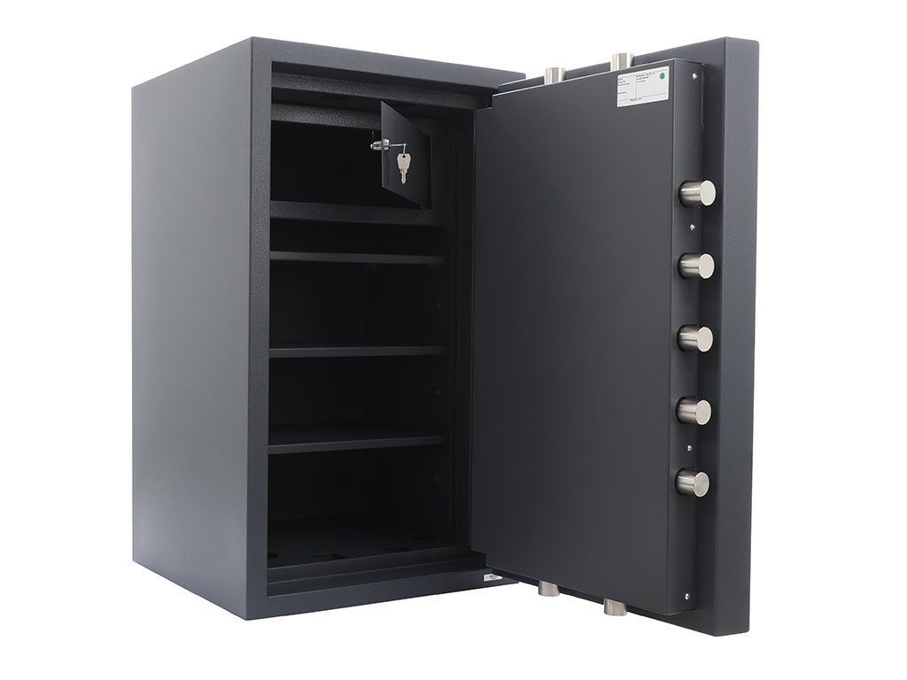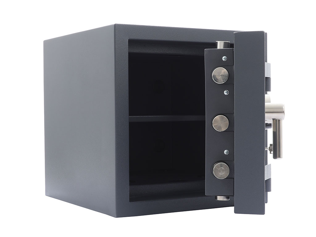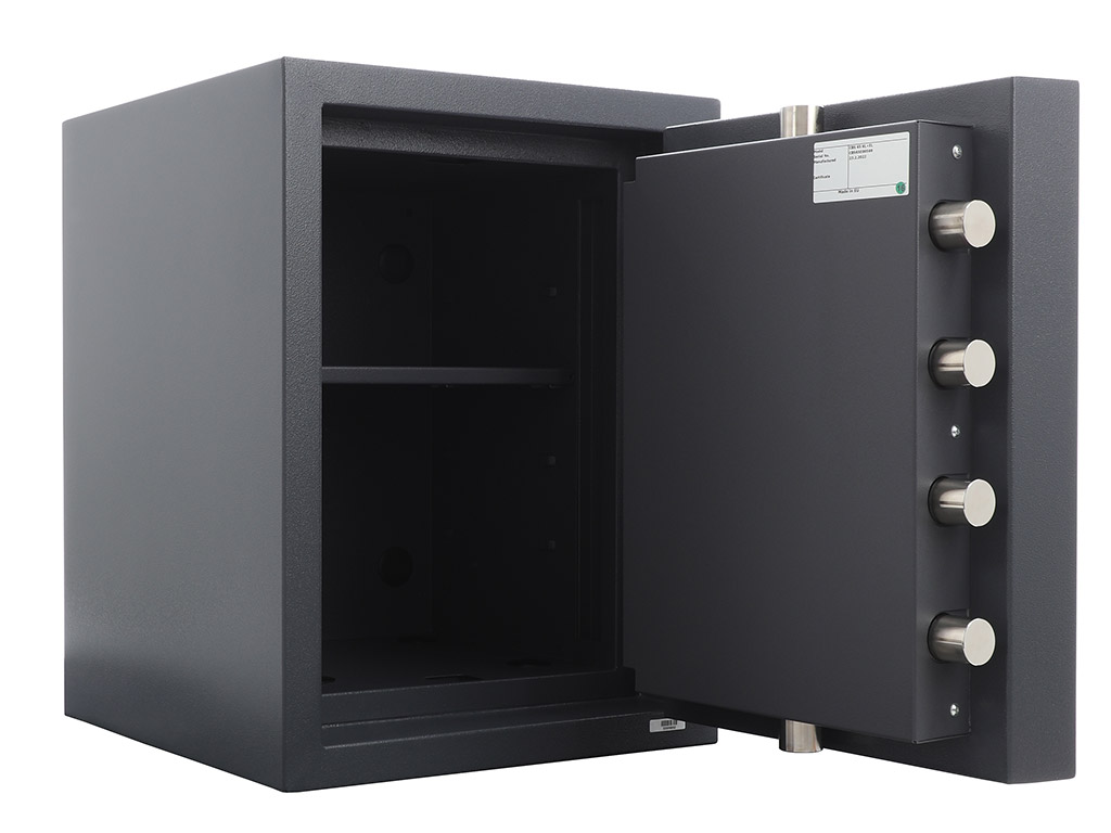 - The safe body and the door are manufactured with two inter-welded walls that are filled with strong heavy concrete.